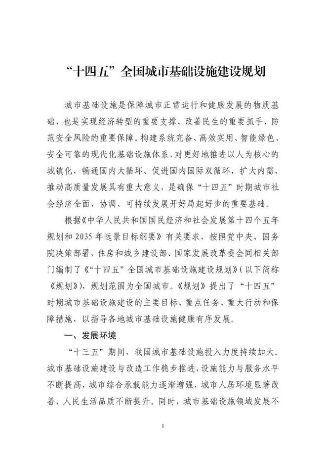 近日,经国务院同意,住房和城乡建设部联合国家发展改革委印发实施《“十四五”全国城市基础设施建设规划》(以下简称《规划》),对“十四五”期间统筹推进城市基础建设作出全面系统安排。