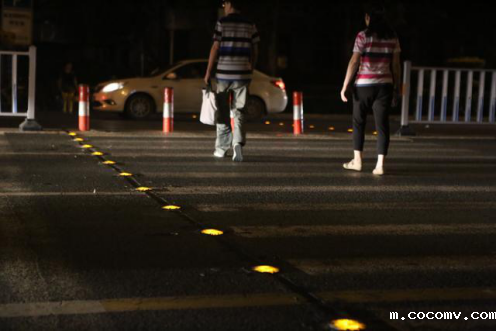 昨天晚上,路过裕华路和友谊大街交口的西侧的斑马线时发现有行人走过的时,发出闪烁的亮光。这又是什么高科技的产品啊?