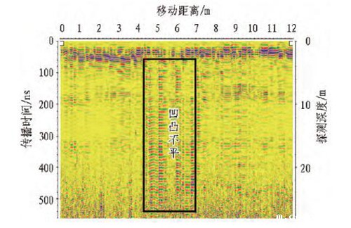 2) 确保探测表面平整或适当调节天线与地面距离,保证天线与探测表面平行,注意清理底板积水,减少积水对探测的影响。