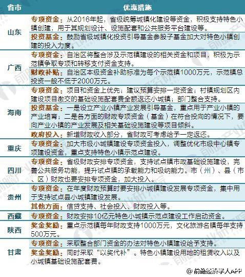 图表 3:截至 2018 年主要省市特色小镇优惠政策汇总(一)