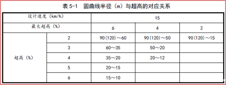 《规范》表5-1 圆曲线半径(m)与超高的对应关系