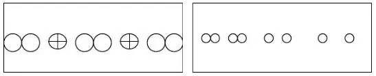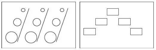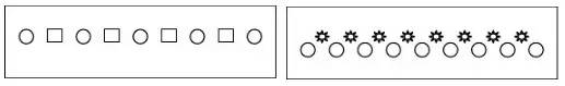 比如,盆花放置时利用变叶木和散尾葵两种质地、颜色、高度等完全不相近的盆栽间隔摆放,形成既有分割空间作用还不至于隔断空间、增强通透性的效果,还能打破一种盆栽的单调、呆板的氛围。图2表示间隔韵律。左图表示中间间隔另一种不同的植物,结合连续韵律表现。右图表示同种植物间间隔不同的植物并且间隔距离渐变,形成间隔韵律,结合渐变韵律共同表现。