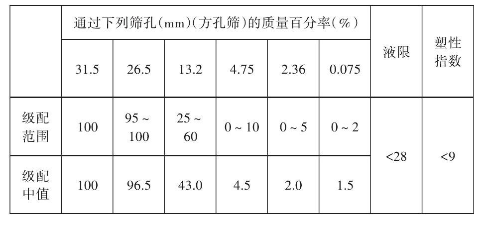 基于施工现场石料调研结果,结合已有工程实践经验,初步得到本项目的级配设计,如表1所示。